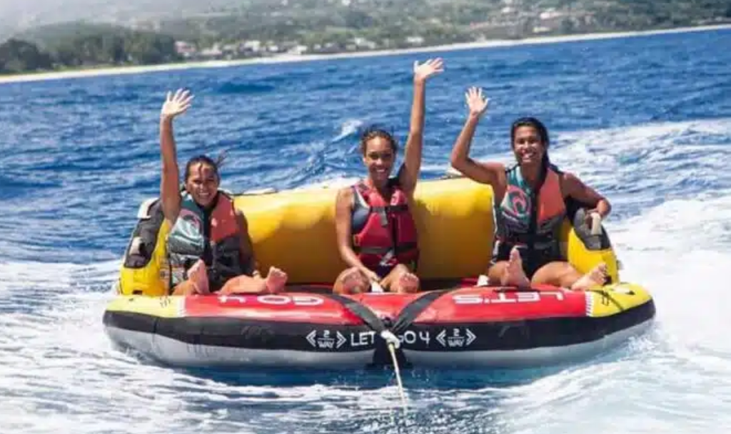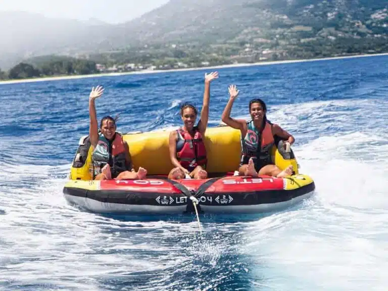 Découvrez la bouée tractée à Saint-Gilles Les Bains ! Fun garanti en famille ou entre amis avec nos bouées canapé, disque, banane ou donuts. Accessible à partir de 5 ans, sécurisé par un moniteur diplômé. Prêt pour une journée inoubliable ?